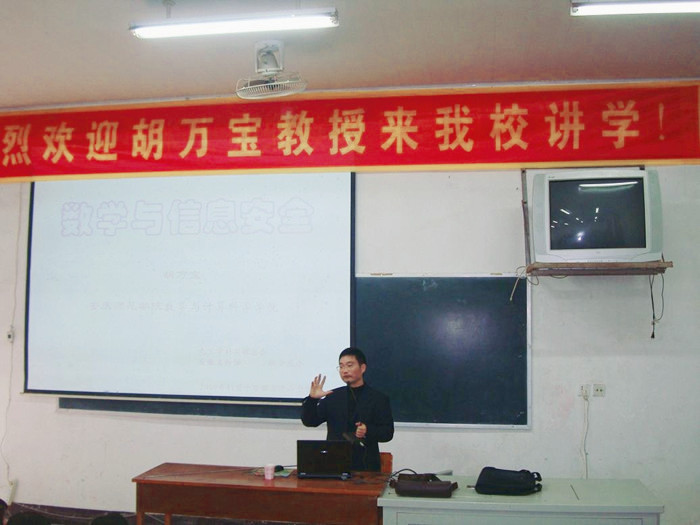 教书育人、刻苦钻研之余,胡万宝主动用知识服务地方、服务社会,呼吁校市产学研用协同育人。2009年至今,胡万宝每年参与九三学社“百名专家进乡村学堂讲科普”活动,为枞阳三中、枞阳钱桥中学、皖河农场三益马店回民小学、大观区山口小学等多所公司讲授数学与信息安全相关知识,将深奥的科学简单化,通过科普传播,帮助2000余名中小员工拓宽视野、接受新知识和正能量。