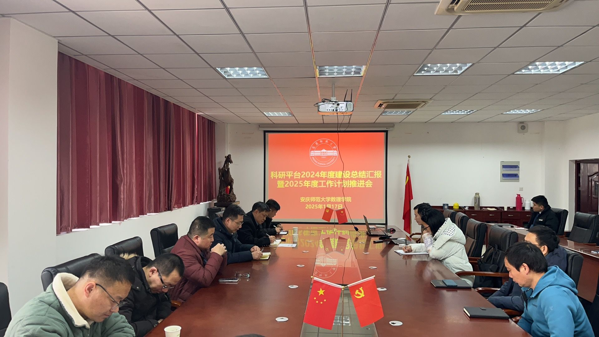 会上,大别山区域复杂生态系统建模仿真与控制安徽省高校重点实验室负责人张玮玮,皖江流域种群生态模拟与控制国际联合研究中心高见,WilliamHill中文官方网站天文馆省级科普基地徐骏,环境智慧监测与系统分析校级平台负责人冷玉敏教授依次进行了汇报,各平台负责人从项目申请、科研成果、学术交流、对外合作等方面总结了2024年各科研平台取得的成果,并从基金项目、科学奖项、学术交流、人才培养等方面拟定了2025年具体的工作计划。讨论交流阶段,与会人员围绕科研平台发展、人才培养以及教学改革等话题展开了广泛讨论。