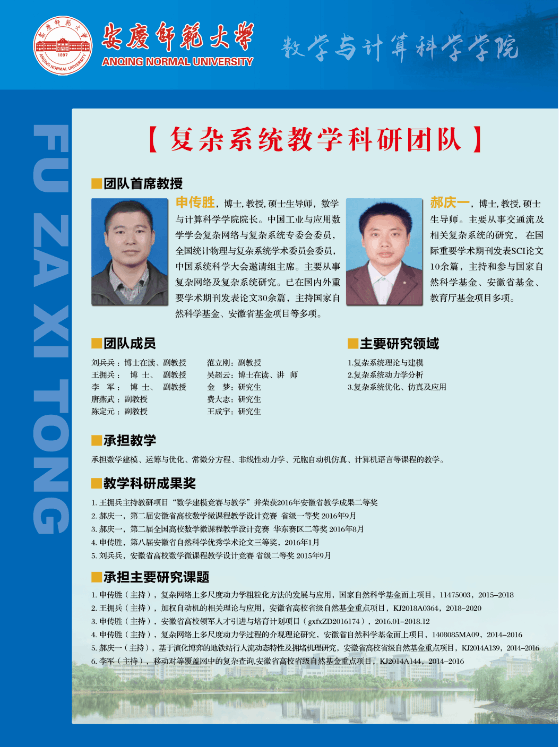6、复杂系统教学科研团队,团队召集人:郝庆一 教授