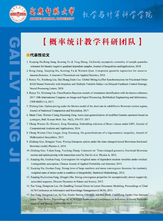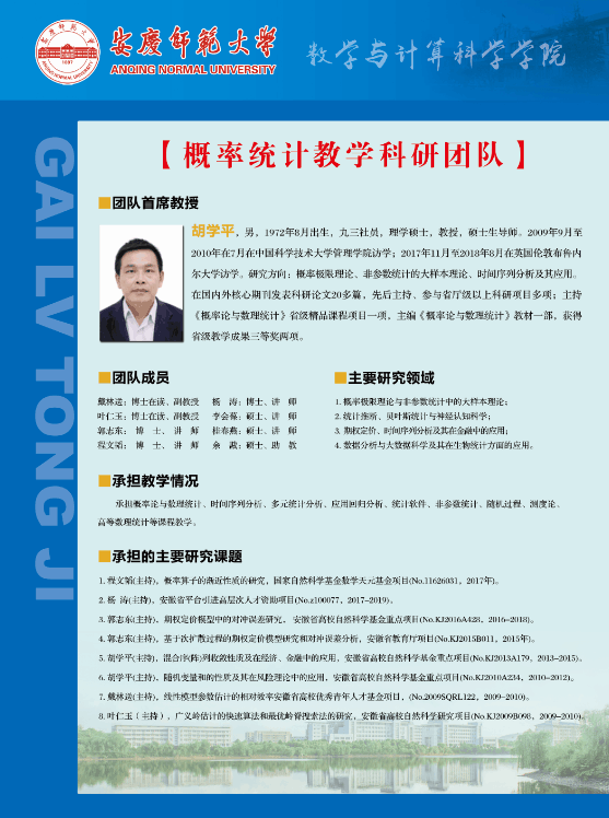 5、概率统计教学科研团队,团队召集人:胡学平 教授