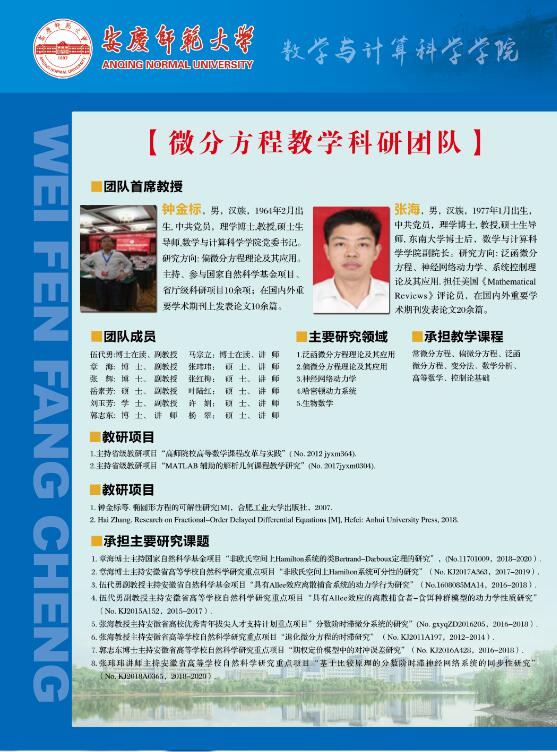 3、微分方程教学科研团队,团队召集人:张 海 教授