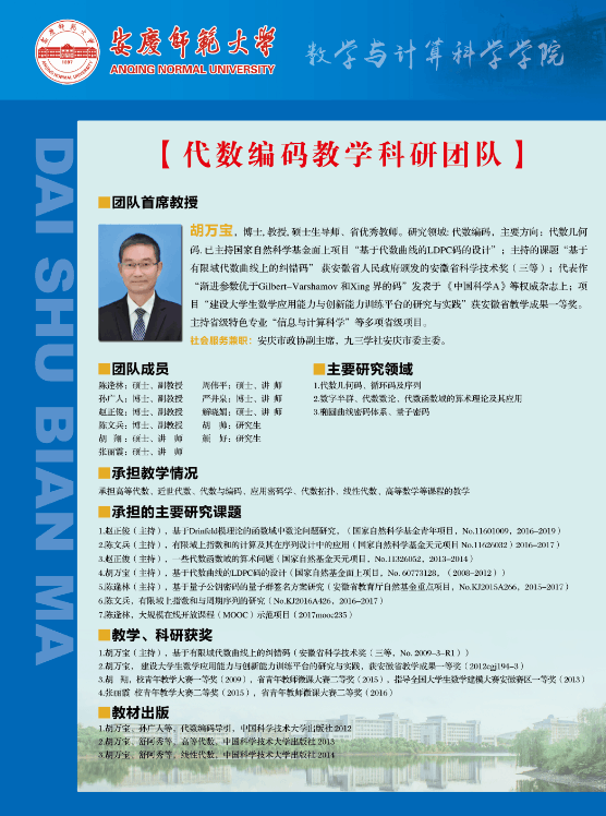 2、代数编码教学科研团队,团队召集人:胡万宝 教授