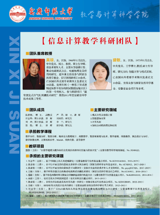 4、信息计算教学科研团队,团队召集人:盛 敏 教授
