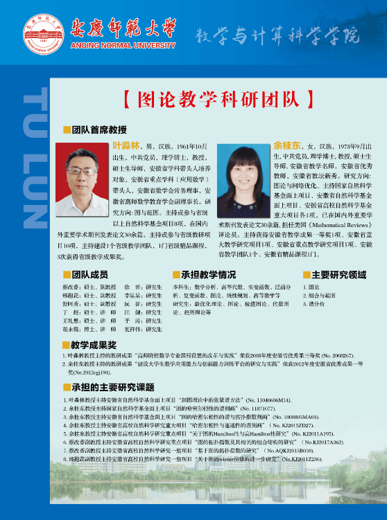 1、图论教学科研团队,团队召集人:叶淼林 教授