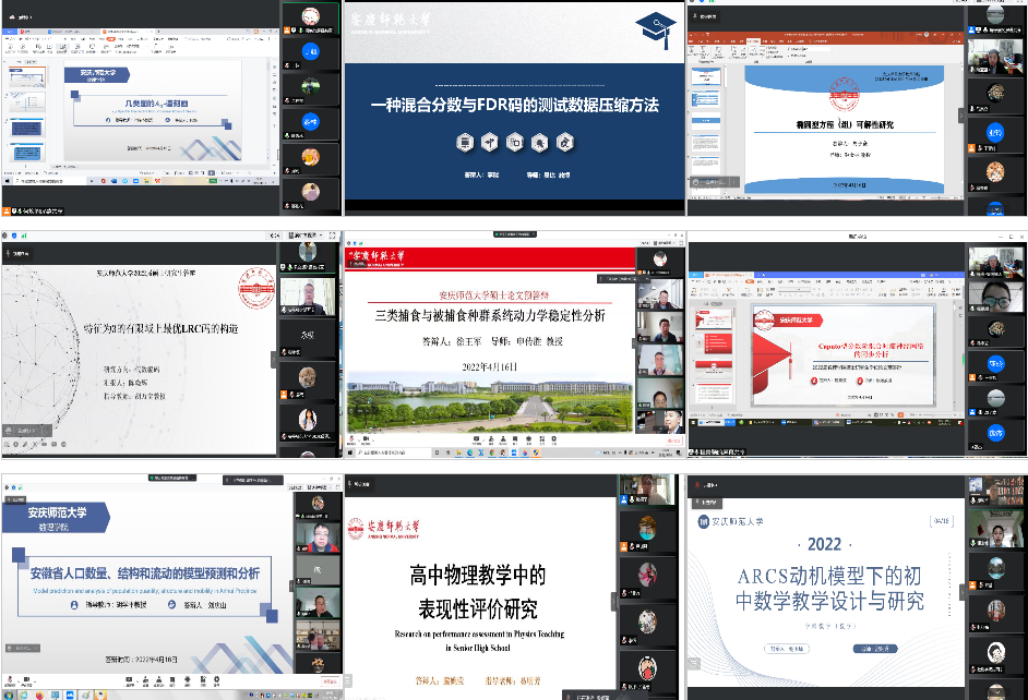 4月16日,william威廉中文官网顺利完成了数学、学科数学、学科物理三个硕士点2022届硕士研究生论文线上预答辩工作。参加本次预答辩的35名研究生分别安排在9个预答辩小组进行,每个预答辩组由1名组长、3-4名专家老师和1名答辩秘书组成,本次线上预答辩共有48名专家老师和120余名在读研究生参加。