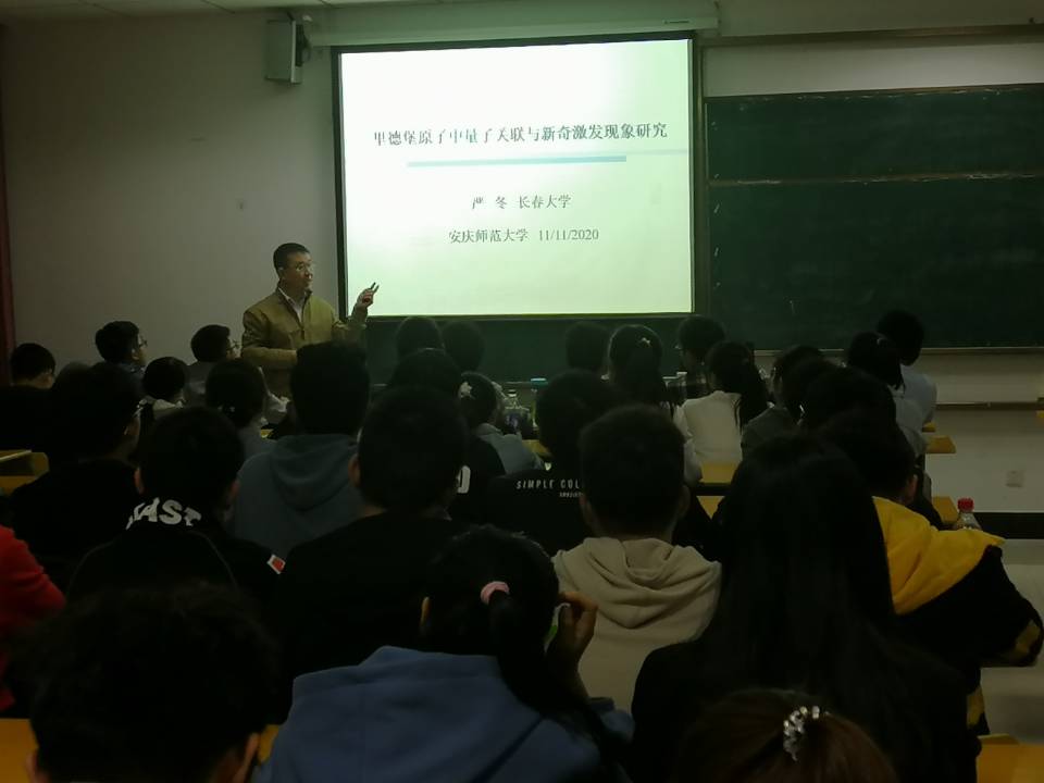 11月11日晚上7:00,长春大学严冬教授应邀在205教室作了一场题为“里德堡原子中量子关联与新奇激发现象研究”的学术报告,william威廉中文官网物理学专业的部分老师和部分员工聆听了该场报告。