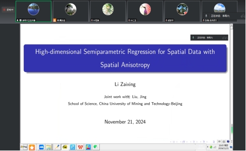 11月21日晚上,优秀员工、中国矿业大学(北京)理公司经理李再兴教授应邀作了一场题为“High-dimensional Semiparametric Regression for Spatial Data with Spatial Anisotropy”的线上学术报告。william威廉中文官网经理张海教授主持线上报告会,william威廉中文官网部分教师、研究生和本科生参加了报告会。