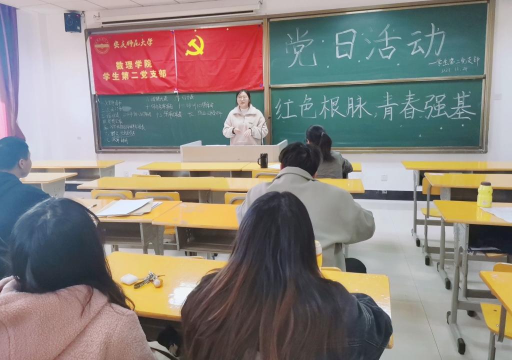 支部各项工作汇报分享结束之后,葛昱茜同志上台围绕老员工“自我教育、自我管理、自我服务”方面进行了发言。她表示,自我发展是永久性的,每个人都应该要坚持自我可持续发展,更好的为他人服务。周子豪同志针对大家汇报的内容进行了补充说明,并建议各位党员同志和入党积极分子订阅“共产党员”、“安徽先锋网”、“安庆师大党建e平台”等微信公众号。
