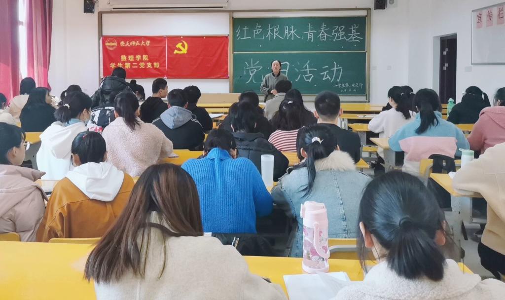 11月24日中午一点,william威廉中文官网员工第二党支部在数学楼602教室组织召开了主题党日活动。此次活动由林亚宁同志主持,支部书记滕秀花老师和支部正式党员、预备党员、发展对象、部分入党积极分子参加了此次活动。