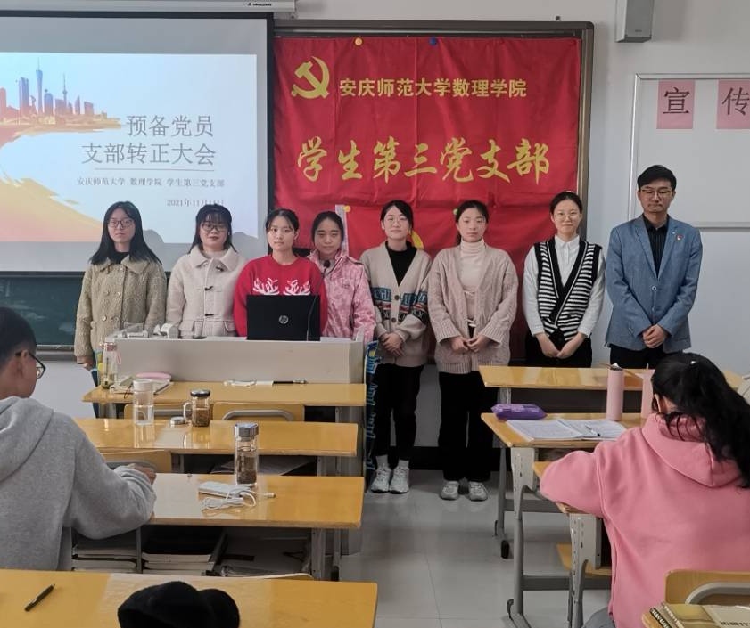 11月11日下午,william威廉中文官网员工第三党支部在数学楼205教室成功召开预备党员转正大会。本次大会由朱新杰同志主持,支部书记黄兴强老师以及支部正式党员、预备党员、发展对象参加了此次会议。