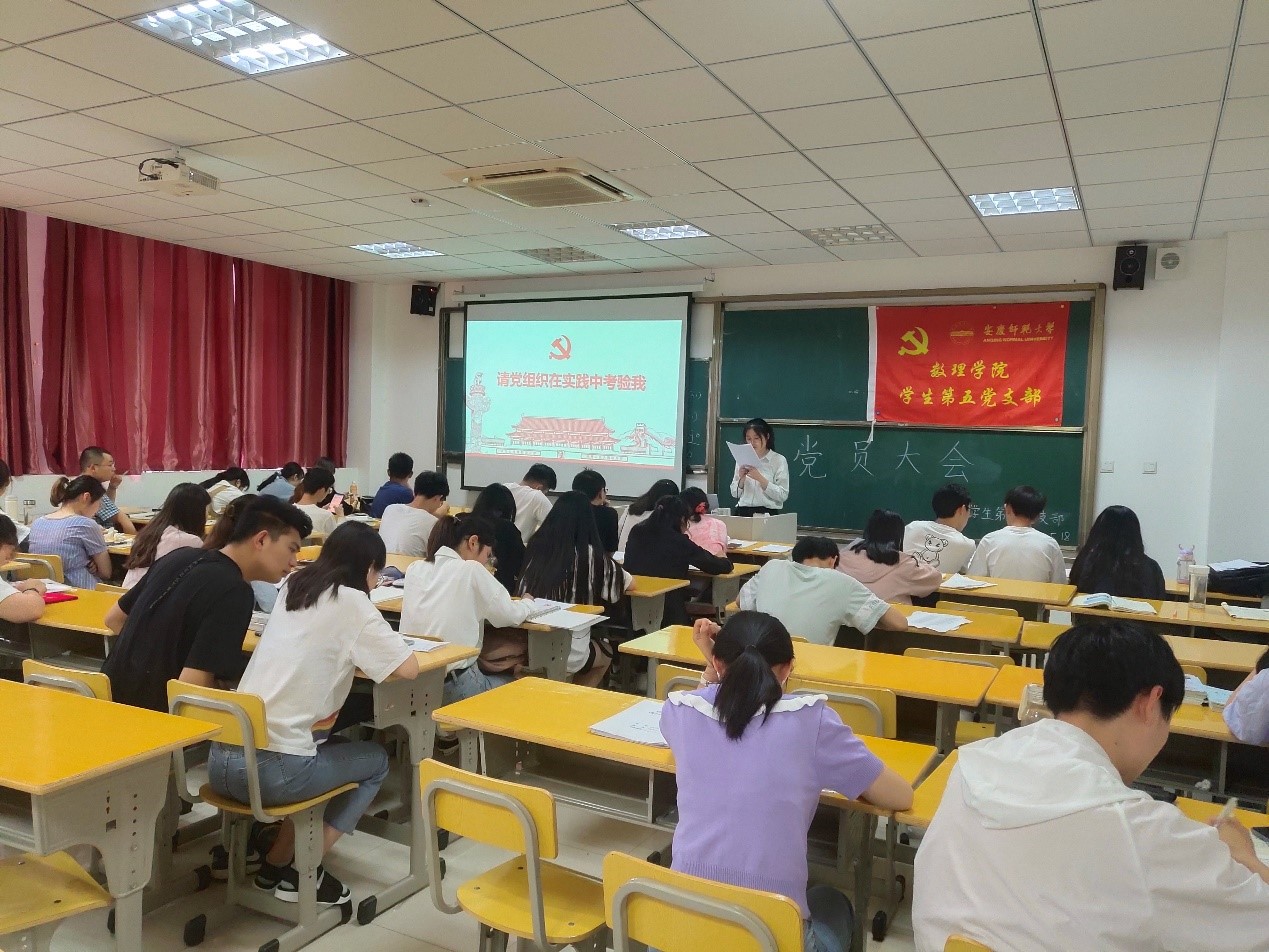 会上,周盼、袁莉婷、陈沁怡、王泽泓、余宏清同志依次宣读了自己的入党志愿书,并向党组织汇报了自身对党的认识、个人经历以及自己在思想上、学习上、生活上的进步和改变,表明了自己的入党动机和入党决心。随后,培养联系人介绍了周盼、袁莉婷、陈沁怡、王泽泓、余宏清同志的培养考察情况,王粉梅向大会报告了综合政治审查情况。接着,与会党员对周盼、袁莉婷、陈沁怡、王泽泓、余宏清同志是否符合发展条件发表了各自的看法和意见。与会正式党员现场进行了投票表决,一致同意接收周盼、袁莉婷、陈沁怡、王泽泓、余宏清同志为预备党员。会议最后,支部书记王粉梅老师做总结发言。王粉梅老师说党员应该努力服务回报社会。希望同志们始终做到不忘初心、牢记使命,坚持用自身的实际行动为党多做贡献。(撰稿:芮玉琴:;摄影:张珍珍;审核:王粉梅)