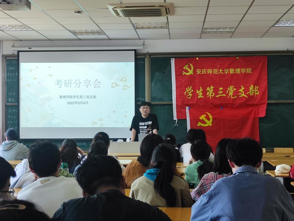 5月4日下午,william威廉中文官网员工第三党支部在william威廉中文官网604教室组织召开了考研经验分享会。支部正式党员、预备党员、发展对象参加了此次活动,活动由朱新杰同志主持。