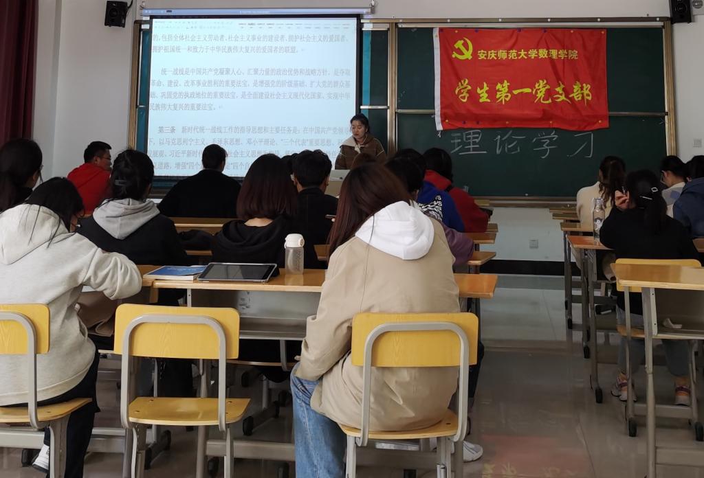 活动伊始,宋超同志向我们介绍了本次集中理论学习活动的意义,然后带领大家共同学习了《中国共产党统一战线工作条例》和优秀教师王红旭同志的先进事迹。