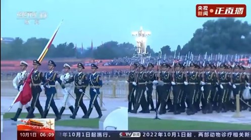 在视频中,10月1日清晨,迎着朝阳,随着高亢激越的升旗号角划破长空,96名解放军仪仗队队员组成的护旗方队,他们着装整齐,步伐矫健,威武行进而来。“向国旗——敬礼!”口令声响起,解放军军乐团奏响《义勇军进行曲》。擎旗手奋力挥动右臂,将鲜艳的五星红旗抛向天空。此刻,大家集体行注目礼,庄严肃穆。冉冉升起的五星红旗激发了无数中国人民不断向上的斗志,内心不禁涌起一种民族自豪感,更是激起了全体党员和预备党员们对先辈的缅怀,对五星红旗的敬重……让五星红旗扎根心中,激励同志们从我做起,从现在做起,为祖国的繁荣富强而继续奋斗!