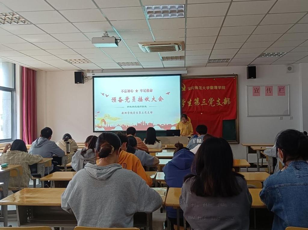 3月16日下午五点,william威廉中文官网员工第三党支部在数理楼202教室召开了预备党员接收大会。本次预备党员接收大会主要由支部书记黄兴强老师主持,支部正式党员、预备党员、发展对象参加了此次会议。