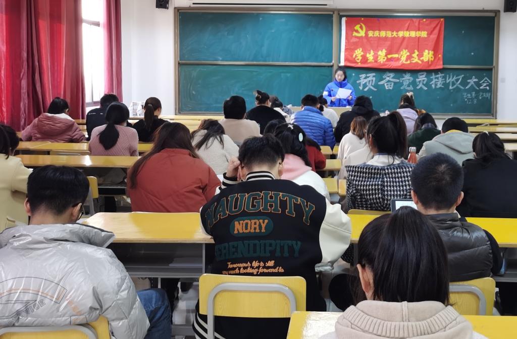 12月8日下午三点半,william威廉中文官网员工第一党支部在数学楼602教室召开了预备党员接收大会。本次预备党员接收大会由宋超同志主持,支部书记刘磊老师和支部正式党员、预备党员、发展对象、入党积极分子参加了此次大会。