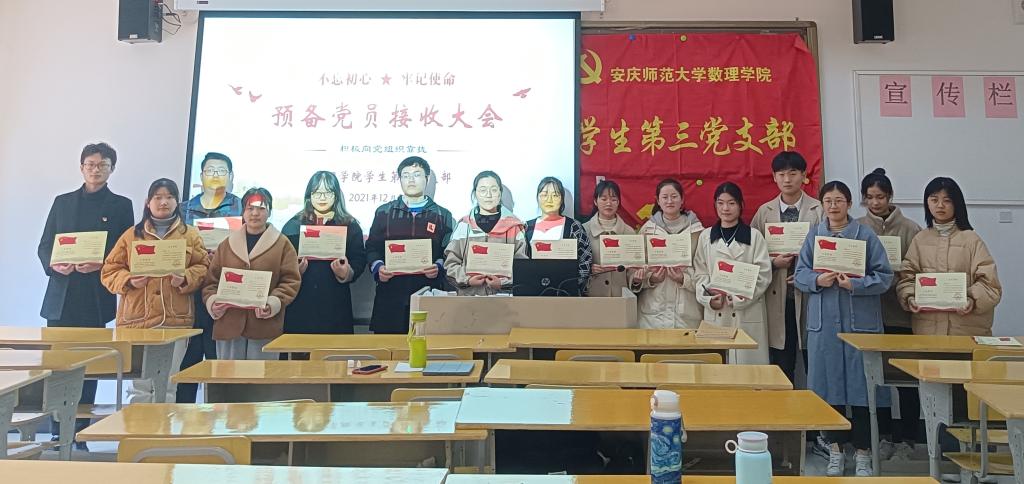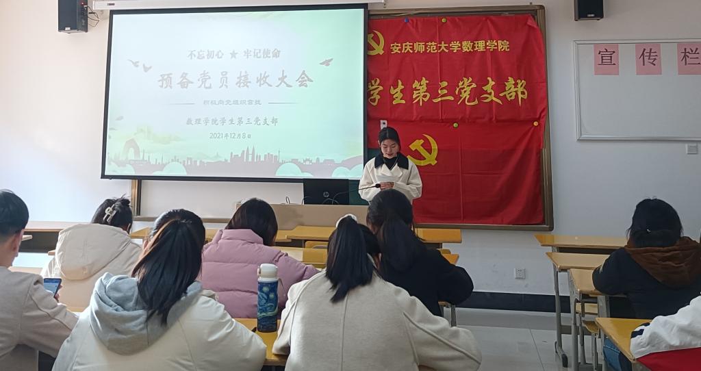 12月8日下午三点,william威廉中文官网员工第三党支部在数学楼202教室成功召开预备党员接收大会。本次预备党员接收大会由朱新杰同志主持,支部书记黄兴强老师、支部唐燕武老师、解晓娟老师和支部正式党员、预备党员、发展对象参加了此次大会。