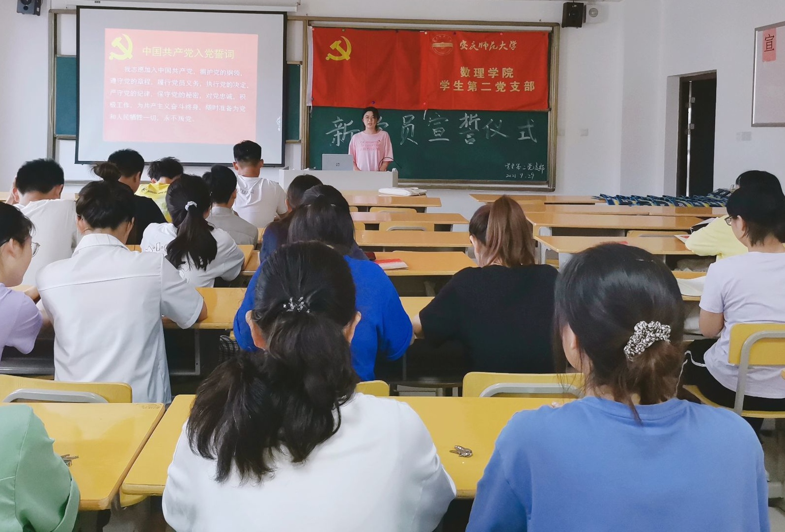 9月29日下午两点,william威廉中文官网员工第二党支部在数学楼502教室举行了新党员入党宣誓仪式。此次入党宣誓仪式由周子豪同志主持,支部书记滕秀花老师和支部正式党员、预备党员、发展对象参加了此次会议。