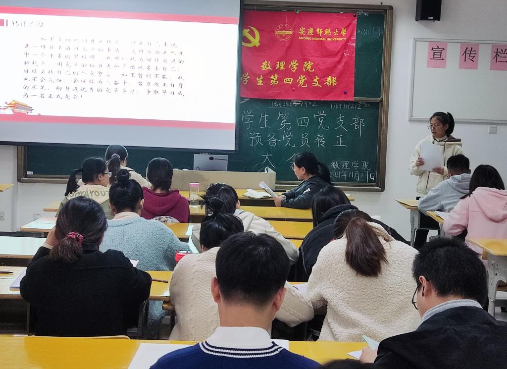11月17日下午三点,william威廉中文官网员工第四党支部在数学楼202教室成功召开预备党员转正大会。本次转正大会由权雨佳同志主持,支部书记潘美玲老师以及支部正式党员、预备党员、发展对象参加了此次大会。