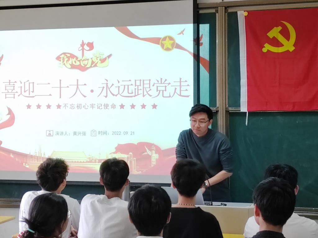 黄兴强紧紧围绕“喜迎二十大,永远跟党走”这一主题,从经济建设、军事国防、科技创新、人民生活等方面,介绍了中国共产党带领全国各族人民取得的丰功伟绩,尤其是中国共产党始终坚持人民至上的执政理念,坚持以人民为中心,把人民安居乐业、安危冷暖放在心上,用心用情用力解决群众关心实际问题,一件一件抓落实,一年接着一年干,不断满足人民群众对美好生活的需要,不断提升人民群众的获得感、幸福感、安全感。