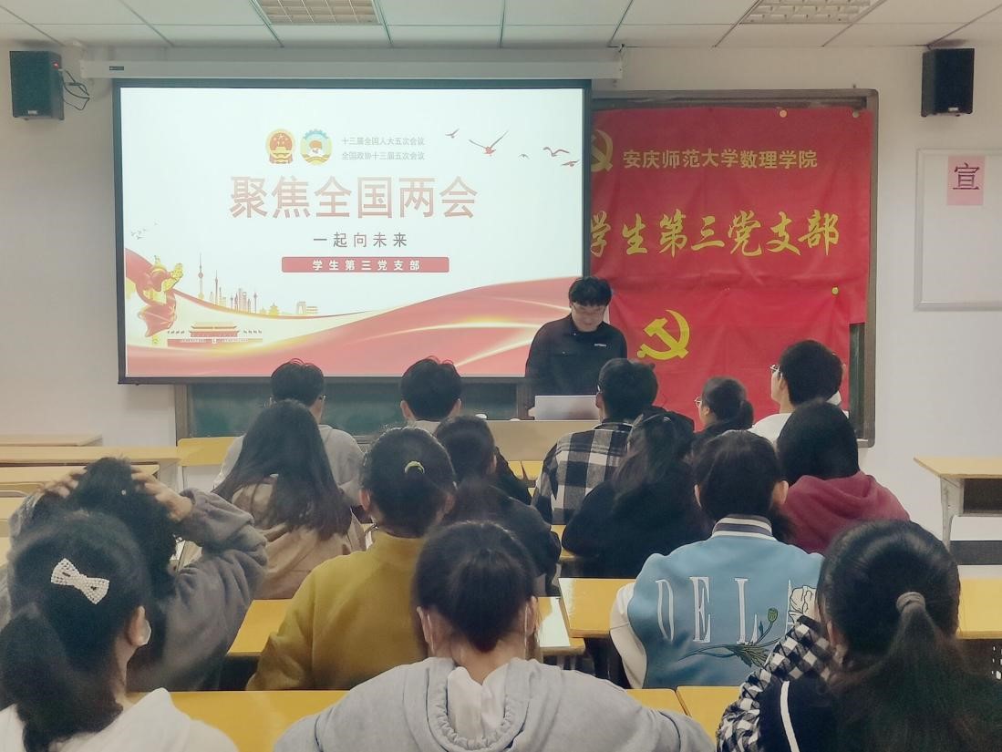 4月13日下午,william威廉中文官网员工第三党支部在202教室组织开展了“聚焦全国两会,一起向未来”主题党日活动。支部正式党员、预备党员、发展对象参加了此次活动,活动由朱新杰同志主持。
