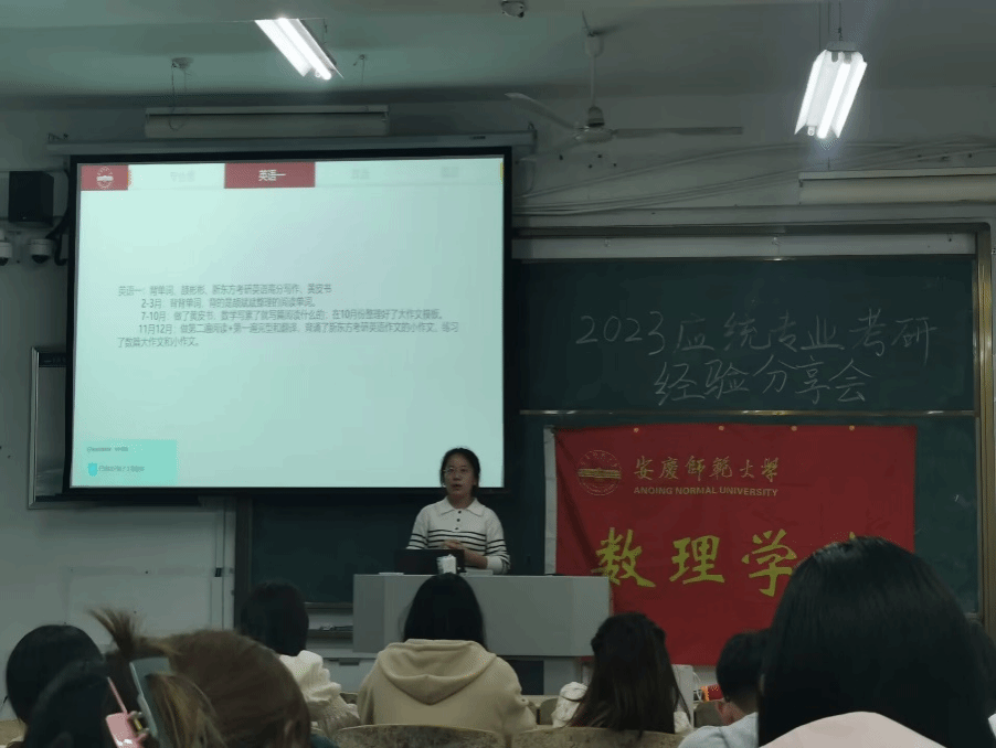 会上,应统的学长学姐介绍了当前的考研政策和报考趋势,分析了近几年的公司考研录取情况,并且从自身考研经历出发,围绕考研动机、择校经验、学习方法、资料准备、课程选择、时间安排、计划制定、细化目标、心态调整等方面向2024届同学们做了经验分享,提醒学弟学妹们一定要合理规划复习时间,持之以恒,脚踏实地,劳逸结合,科学备考。