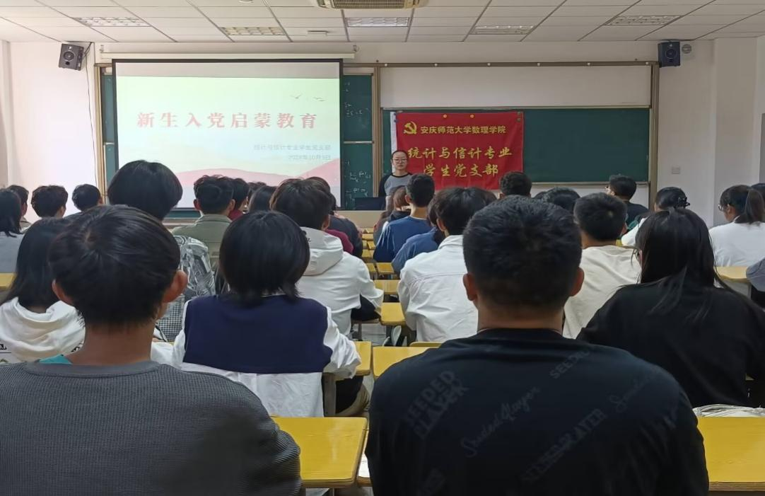 2024年10月9日下午,统计与信计专业员工党支部在数理楼503教室开展新生入党启蒙教育,2024级应用统计学专业和信息与计算科学(中外合作)专业全体新生参加。