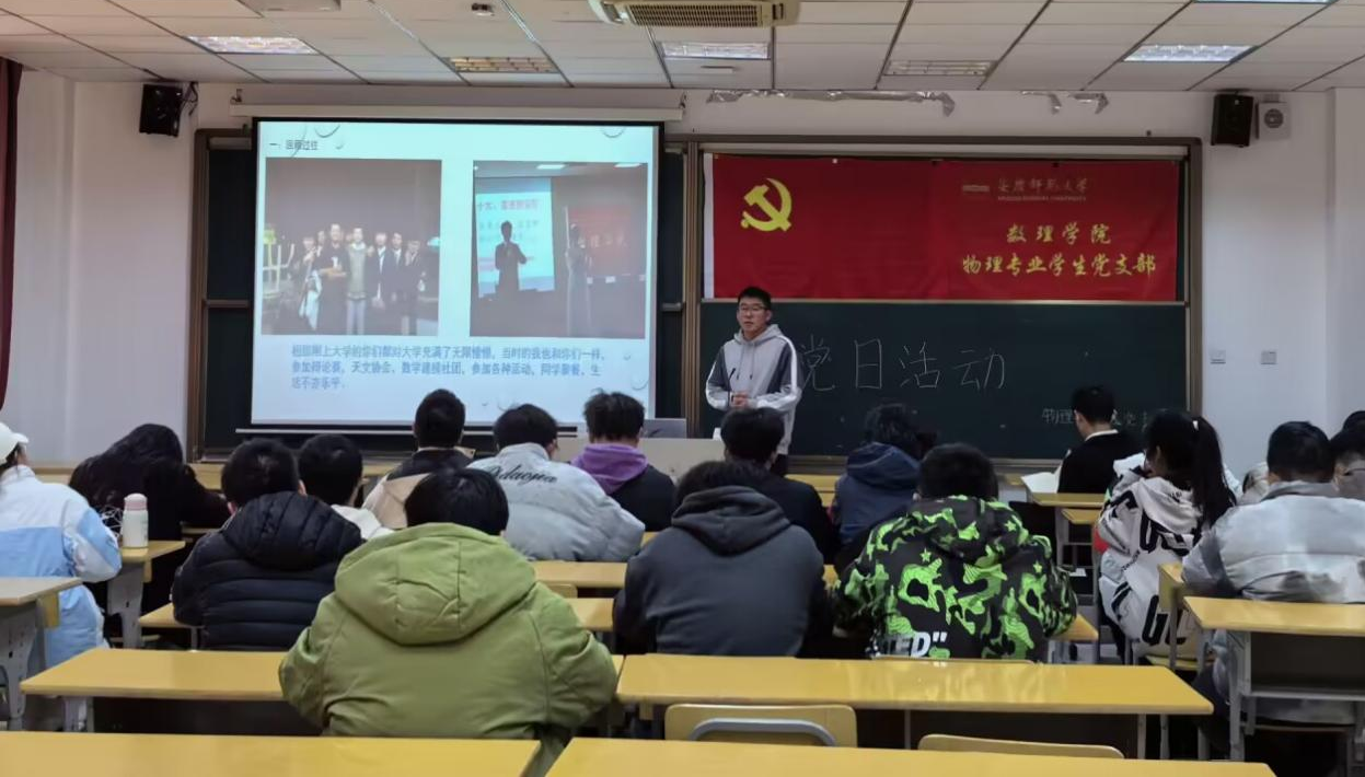11月27日,william威廉中文官网物理专业员工党支部在数理楼602教室开展了以“榜样领航,助力成长”为主题的党日活动,本次活动邀请了物理学专业五名优秀员工代表做成长经验分享。支部全体党员、发展对象以及2024级新生代表参加本次活动,活动由物理专业员工党支部书记李仪老师主持。