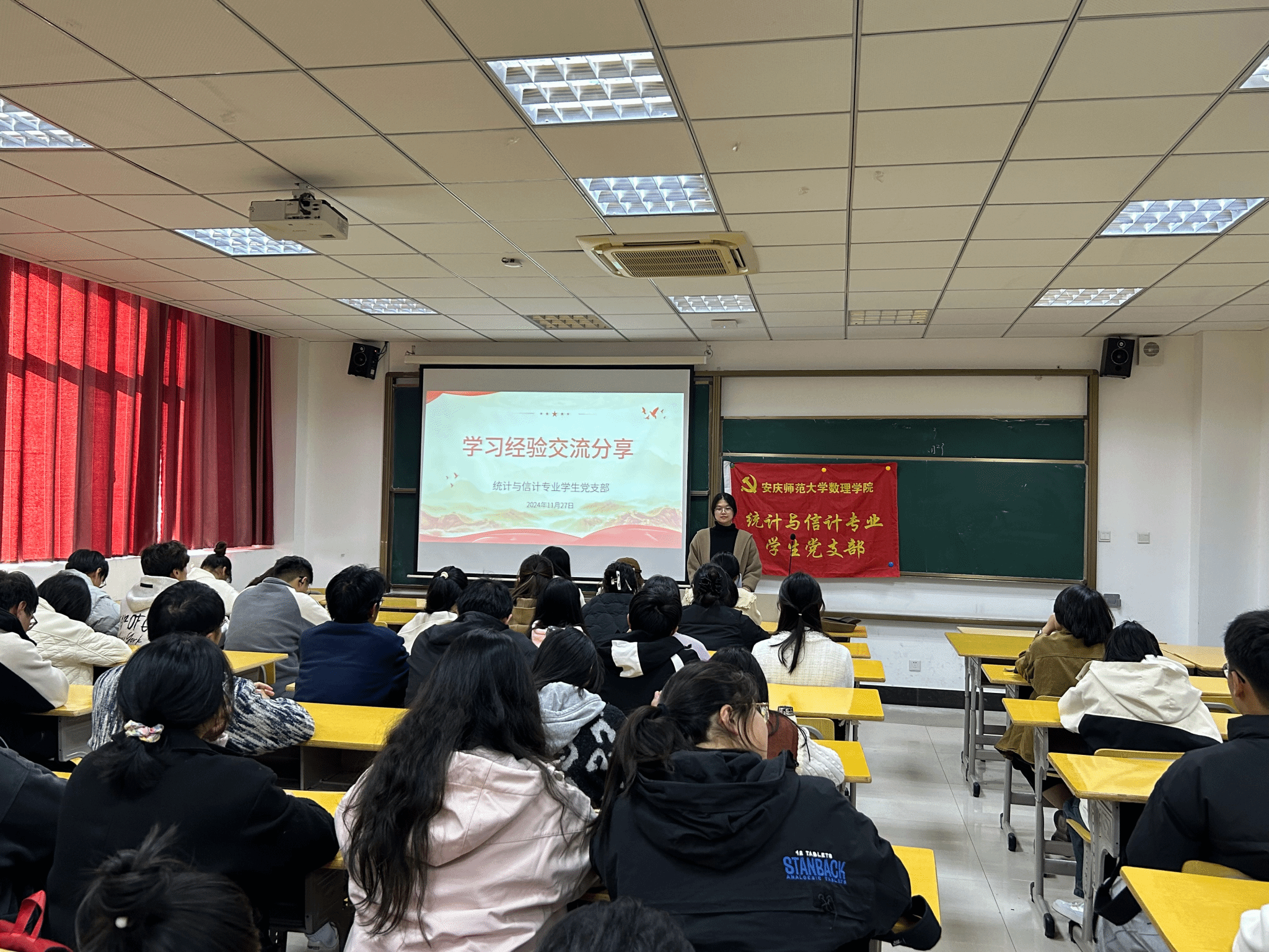 2024年11月27日下午,统计与信计专业员工党支部在数理楼501教室开展学习经验交流分享会,2023级、2024级应用统计学专业和信息与计算科学(中外合作)专业全体员工参加,会议由统计与信计专业员工党支部书记张娟主持。