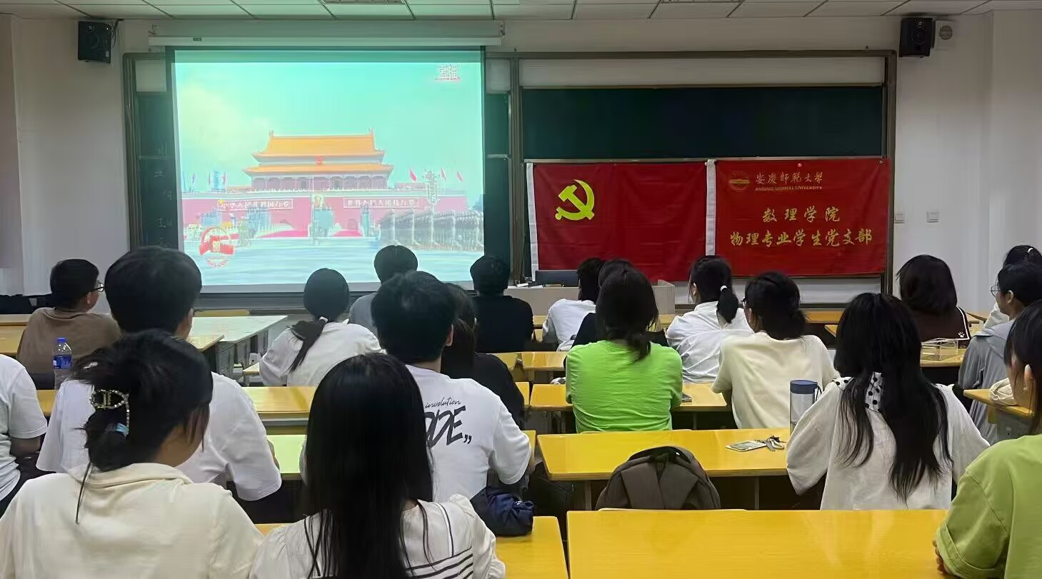 9月3日上午,中国人民抗日战争暨世界反法西斯战争胜利80周年纪念大会隆重举行。物理专业员工党支部组织全体党员集体观看阅兵活动,见证这一重要历史时刻。