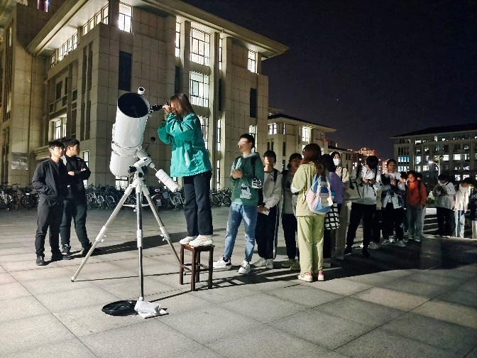 “曾经我一直很疑惑,为什么在乡村里看到的星星要比在城市看到的多?今天我在这里找到了答案。”物理学专业2022(2)班的王震表示,他在听了老师的分析讲解后才领悟到,原来是因为城市中的光污染过于严重,导致肉眼无法接收或忽略了星星较为微弱的光。“我希望能在未来的专业学习中走进天文学知识,不仅做到脚踏实地增长知识才干,更要学会仰望星空启迪思想心灵。”