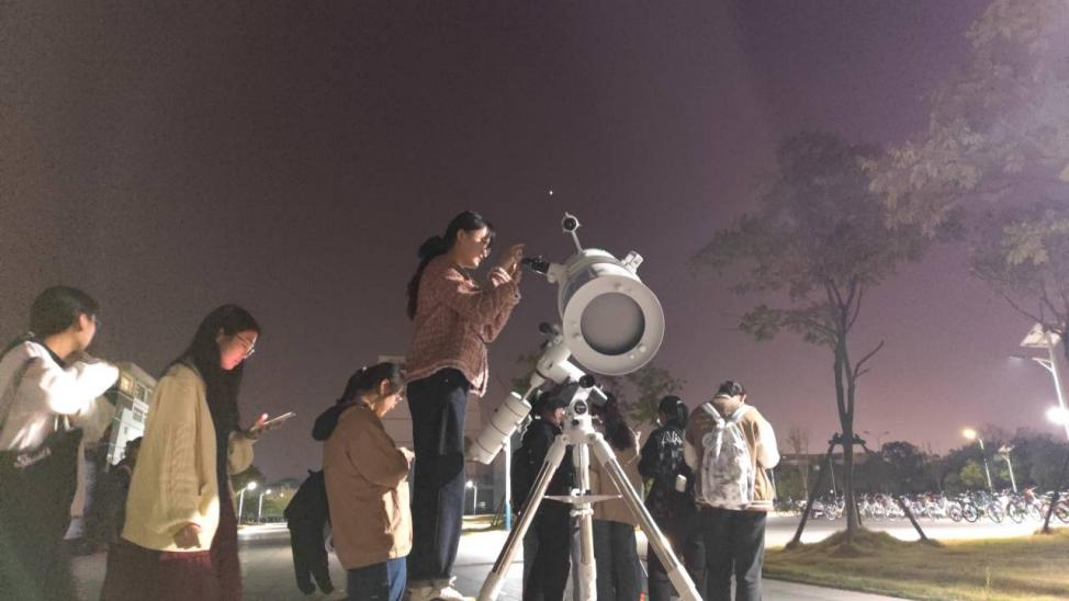 为提高员工科学文化水平,提升专业素养,10月11日晚,公司组织老员工天文爱好者协会于william威廉中文官网教学楼广场中央,开展“吟闲宇宙,伴行星辰”天文观测活动。2022级新生和天文爱好者协会成员通过天文望远镜“走向太空”,直观感受木星、土星、月球的全貌,领略宇宙的无穷魅力。