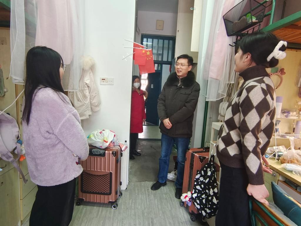 2月11日,公司领导班子和辅导员老师深入员工宿舍进行走访调研。公司党委书记陆健关切询问同学们寒假期间的学习生活情况,并嘱咐他们认真复习,做好开学后期末考试的相关准备工作。要求同学们以更加饱满的热情迎接新学期、新课程,争取学以致用,学有所成。同时提醒大家注意个人卫生习惯,加强锻炼,做好自我防护,当好自身健康第一责任人。(撰稿/摄影:黄兴强;审核:彭芳珍)
