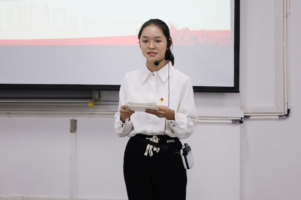 宣讲团成员周扬帆首先以“百年征程,塑造了共青团坚持党的领导的立身之本”为主题展开讲解。他用内容丰富的幻灯片,浅显易懂的宣讲语言,向同学们深刻阐明了一个道理:听党话、跟党走始终是共青团坚守的政治生命,党有号召、团有行动始终是一代代共青团员的政治信念。