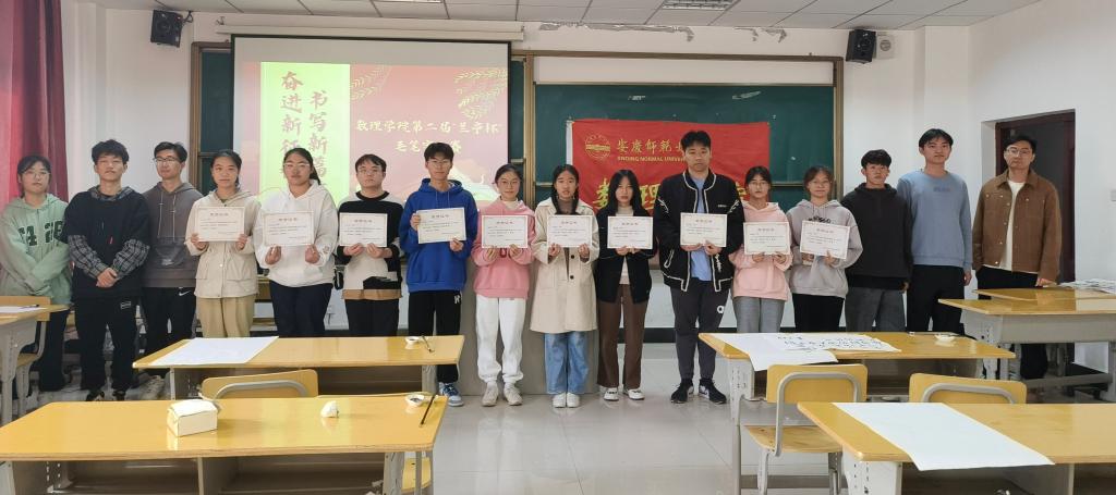 本次比赛以“学习二十大,书写新篇章”为主题,号召青年学子歌颂党的辉煌成就,抒发爱党、爱国、爱人民的真情实感,展现共创美好未来的时代风采。参赛选手的作品文字笔画流畅,整体美观,落笔行云流水,一气呵成。最终数学与应用数学2021(4)班吴佳丽荣获一等奖,数学类2022(2)班王予尧和数学与应用数学2021(5)班罗佳璇荣获二等奖,数学与应用数学2021(1)班魏晓丹、(4)班刘星俣和应用统计学2021(1)班翟广睿荣获三等奖。
