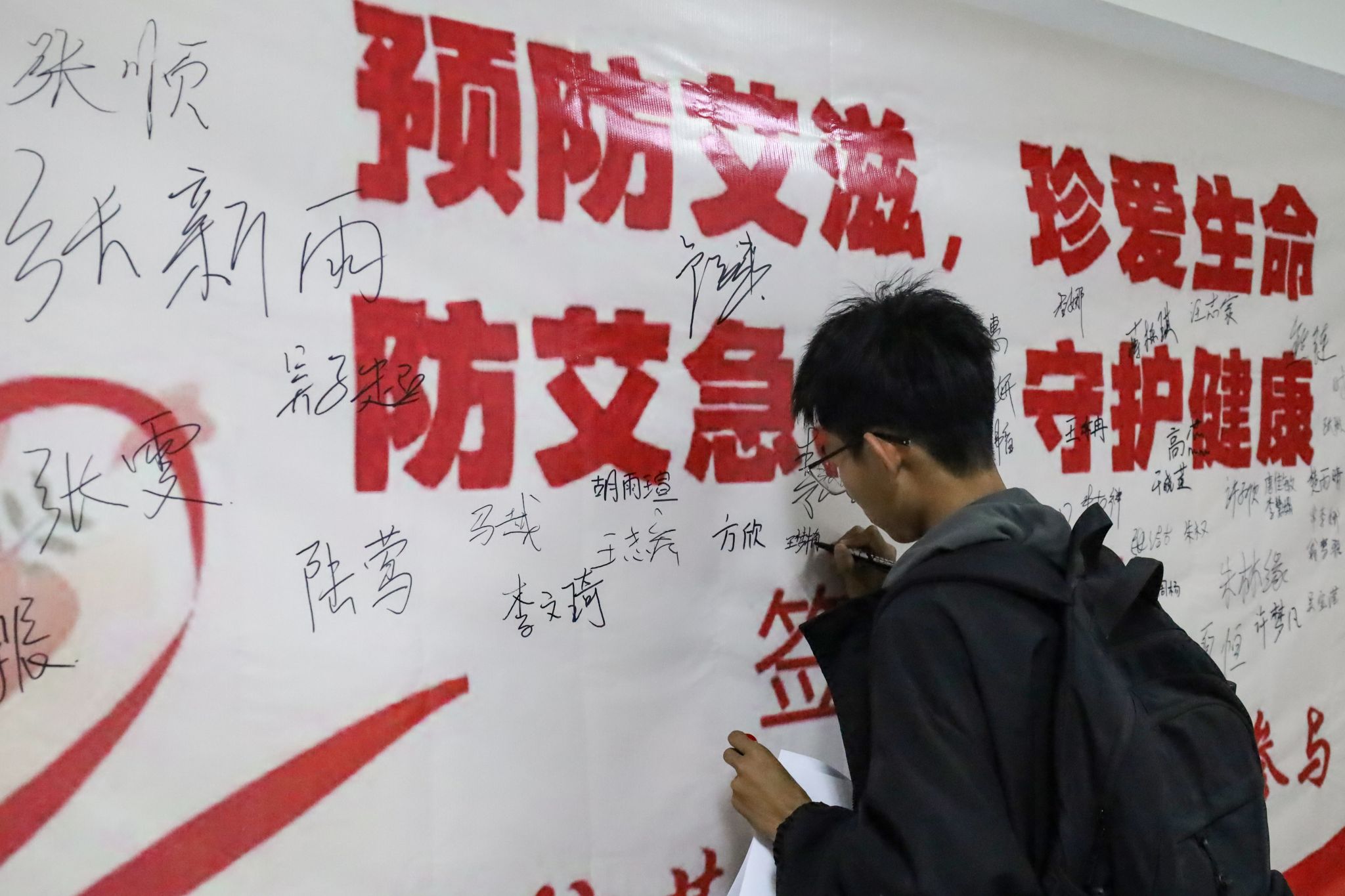 “通过宣传教育,可以提高员工对艾滋病防控工作的认识和支持,从而采取有效的预防措施,减少感染的风险。”数学与应用数学专业2024(4)班的何奕锦同学在签名墙上签下自己的名字并佩戴上代表“艾滋病防治”的红丝带。在他看来,大学是年轻人开始独立生活和探索人际关系的阶段,普及艾滋病知识可以帮助员工通过健康的生活方式预防疾病,这是新生们必不可少的一堂教育课。
