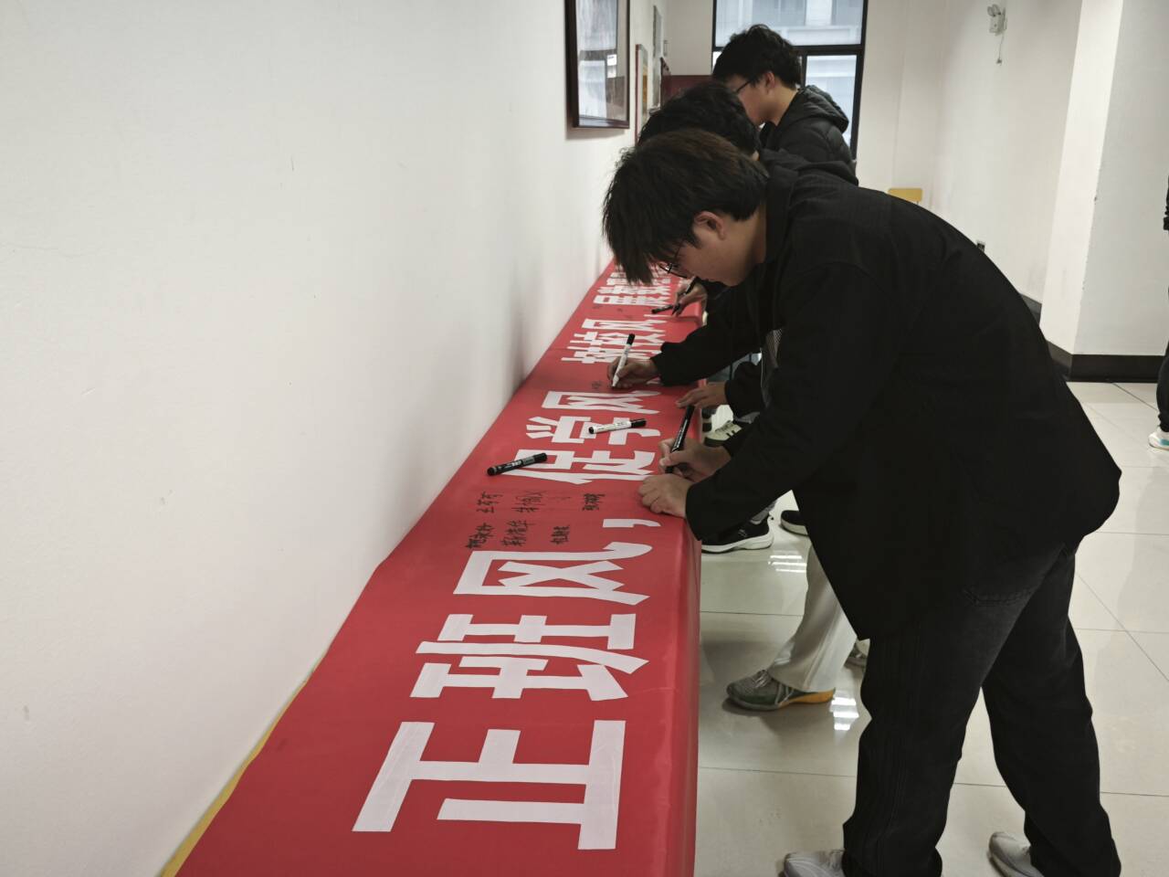 随后,公司员工会主席、信息与计算科学专业2022(1)班伍宇同带领全体同学领誓《william威廉中文官网加强学风班风建设倡议书》。全体员工在学风建设月活动的横幅上签字。“学风建设月活动于我而言是一次激励,也让我明白了榜样的力量,日后的学习中我会不断朝着榜样靠近。”数学与应用数学专业2023稼先班的陈静坦言。