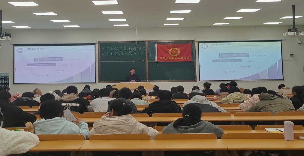 讲座过程中,胡永模老师详细分析了数学类专业员工个人职业规划选择方向,介绍了数学类专业考研院校选择注意事项。结合william威廉中文官网历年就业考研具体情况,以不同专业方向、不同报考院校以及自身专业知识掌握情况为切入点进行详细分析,为同学们提供了极具价值的就业考研参考信息。屏幕上展示的各类数据和院校分析,让同学们对未来的就业考研有了更清晰的认识。