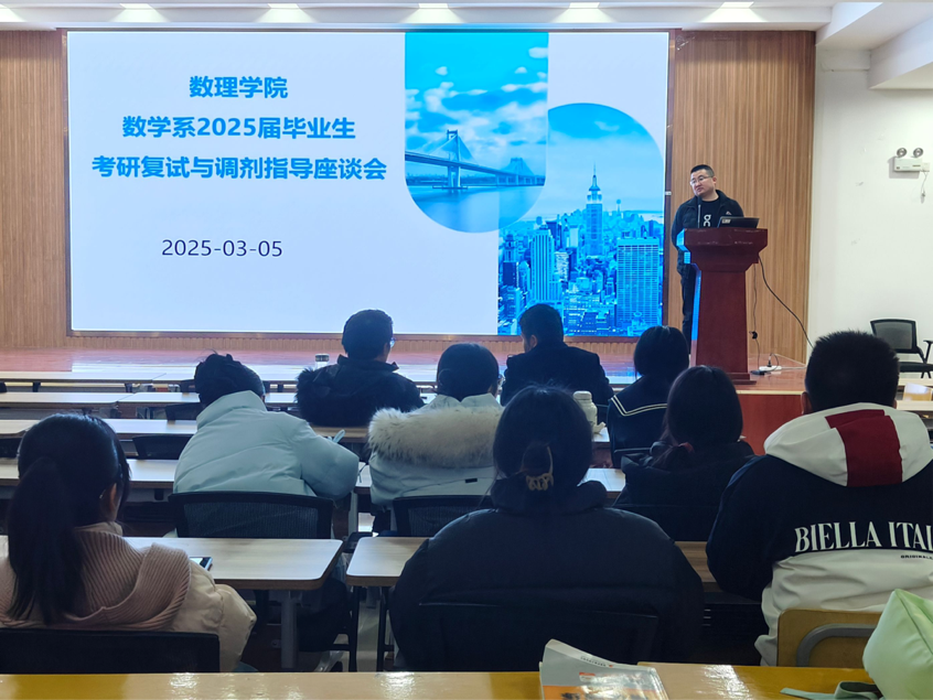 讲座伊始,数学与应用数学专业系部主任舒阿秀对2025届考研学子所取得的初试成绩表示祝贺。她围绕考研复试问题,为考生们深入解读了复试和调剂政策、具体流程以及注意要点。舒老师表示,调剂是一次不容错过的重要契机,考生需积极主动、迅速行动。建议大家提前全面了解目标院校的调剂动态,精心备齐相关材料,在调剂系统开启的第一时间提交申请。