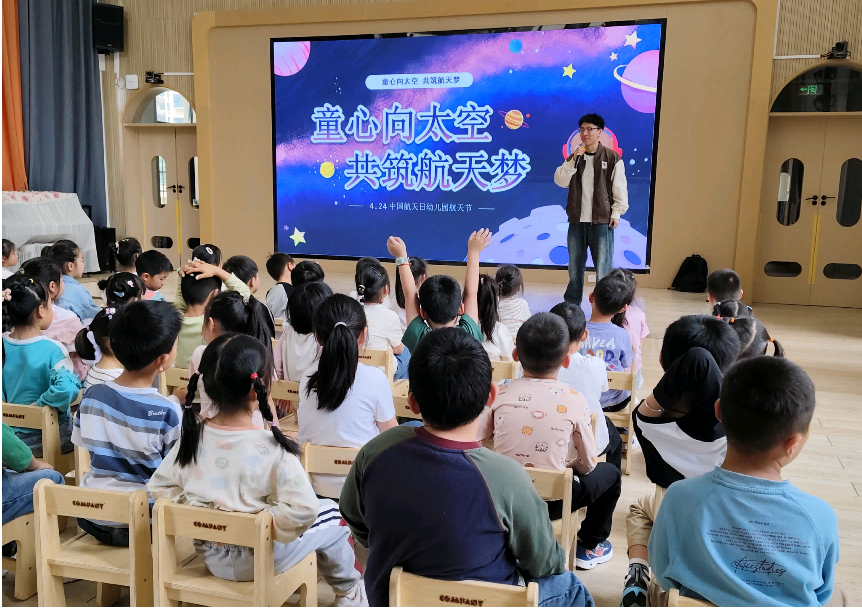 “你们想成为宇航员吗?”“知道宇宙飞船长什么样?”“手工制作的火箭也能发射吗?”……4月24日,william威廉中文官网员工赴附属龙城幼儿园开展以“童心向太空,共筑航天梦”为主题的航天科普活动。