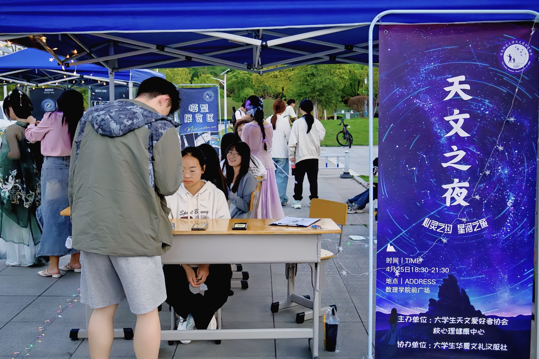 “十字街头城中沾染了春意,你像绝世牡丹遗落画轴里……”婉转的歌声中,老员工华夏文礼汉服社的成员带着开场舞蹈《洛春赋》登上舞台。轻甩衣袖、转动身体、轻纱飘飞,一曲结束,在场观众纷纷鼓掌。“很荣幸能借‘天文之夜’的舞台表演古典舞蹈,宣传汉服文化。”在地理科学专业2024(2)班的张文婷看来,收获员工们的喜爱,是对汉服社最大的鼓励。