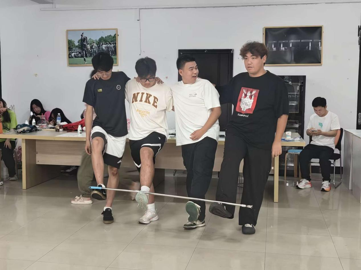 “松鼠搬家”活动环节精彩上演。由两人负责搭建“树洞”,第三人扮演“松鼠”,同时还增设了“替补”角色,并配合“松鼠搬家”“樵夫砍柴”“森林大火”这三个指令,现场氛围热烈且紧张。通过报数的方式进行分组,5支队伍迅速组建完毕。各队推选组长、商定策略,在辅导员李薇薇老师下达的指令下,同学们在互动过程中领会到团队协作的要义。班主任龙永尚老师也参与其中,为大家加油鼓劲,见证了大家从零散的个体转变为团结的小队。