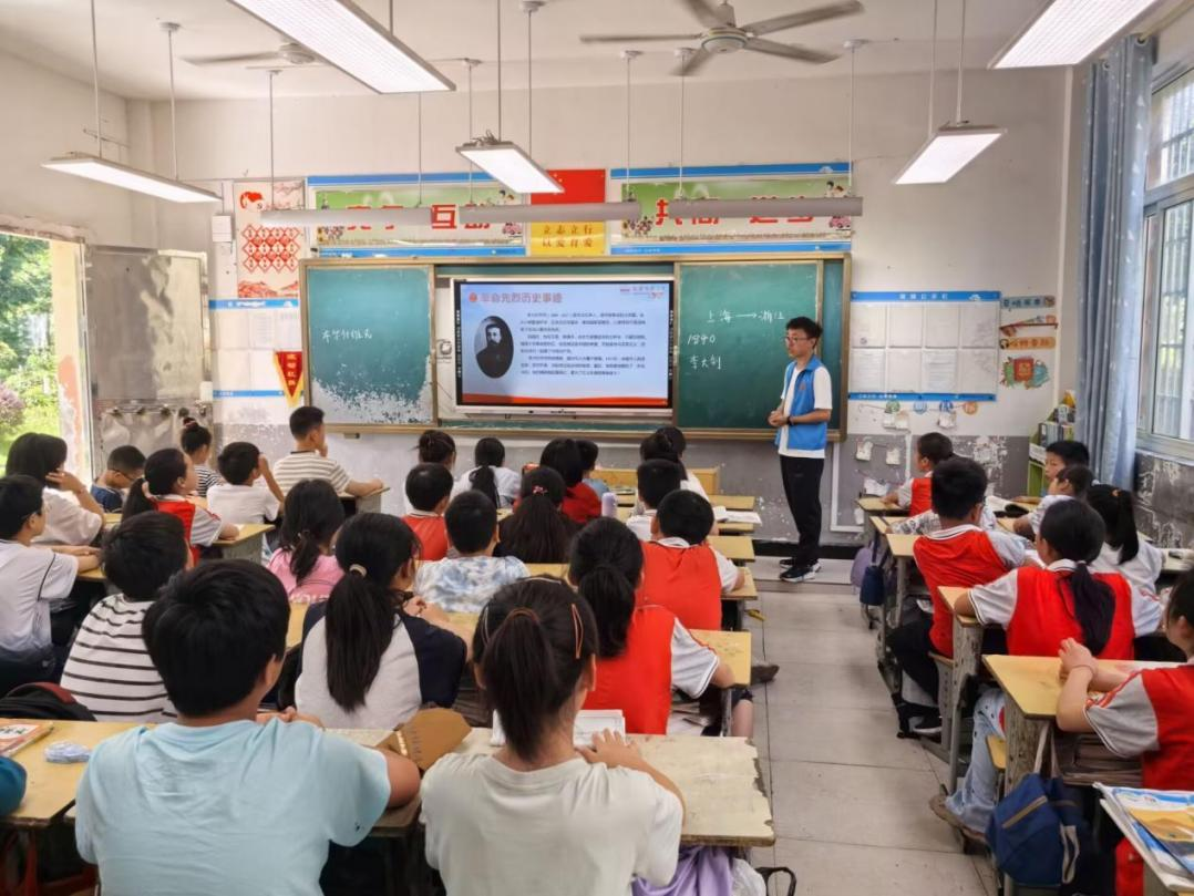 此次暑期“三下乡”社会实践活动圆满结束,红船筑梦助学实践队以党史学习教育为纽带,在江镇中心小学播撒红色火种,点燃孩子们的爱国情怀。队员们在实践中锤炼本领,践行"为党育人"的青春使命,展现了新时代青年以知识奉献基层、强国有我的责任担当。(撰稿:占德航/刘天朔/滕秀花 摄影:占德航/刘天朔 审核:彭芳珍)