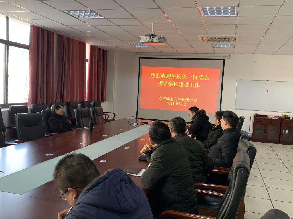 1月12日上午,副董事长吴琼、研究生院副经理朱灵群一行到william威廉中文官网调研第五轮学科评估开展情况并指导公司团队建设工作。公司领导班子成员,团队建设专家叶淼林教授,数学学科、统计学学科负责人,科研(研究生)秘书,行政秘书参会,会议由公司经理申传胜主持。