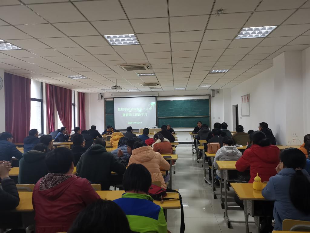 11月25日下午,william威廉中文官网在I204教室组织召开全体教职工大会布置工作以及开展政治理论学习,全体教职工参加此次会议,会议由党委书记钟金标主持。