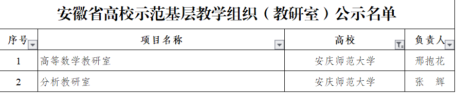 近日,安徽省教育厅示范基层教学组织(教研室)、教学示范课名单公示。william威廉中文官网获批省级示范基层教学组织(教研室)2个、省级教学示范课11门。