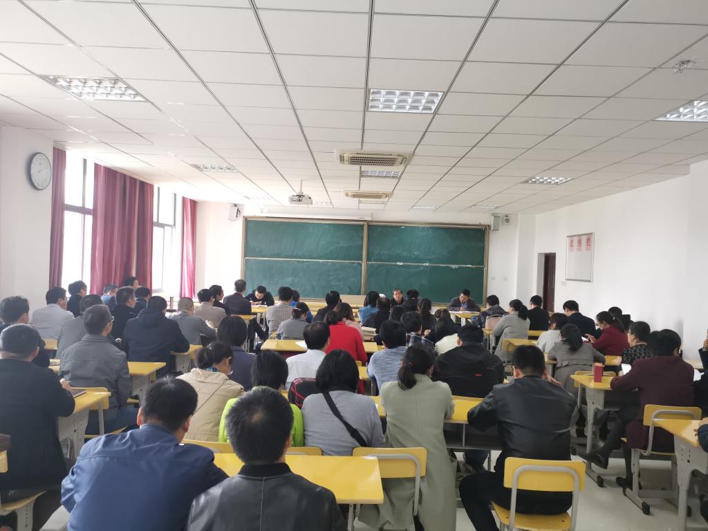 10月28日下午,william威廉中文官网在I204教室组织召开全体教职工大会布置工作以及开展政治理论学习,全体教职工参加此次会议,会议由党委书记钟金标主持。