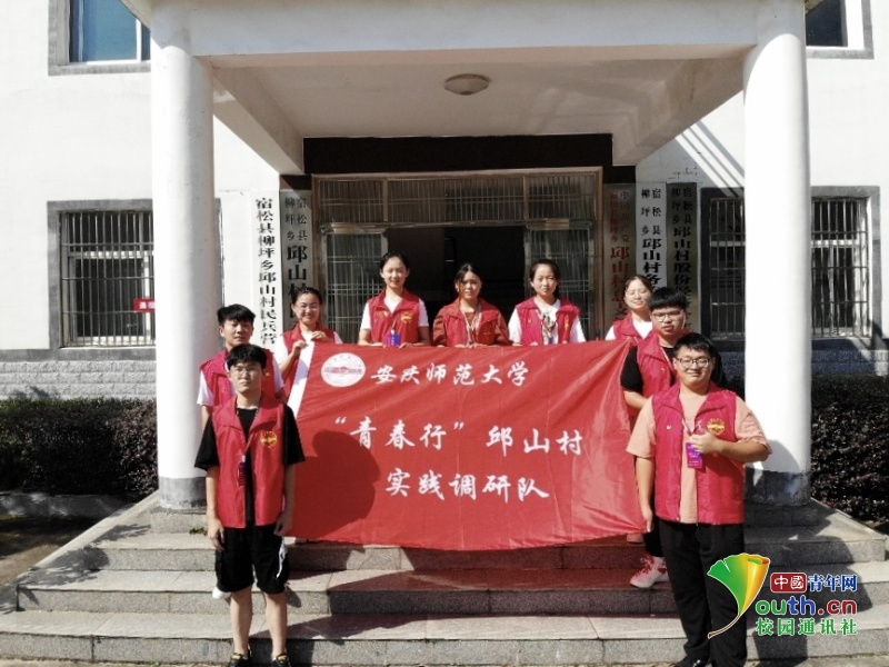 图为实践队开展第一天的调研工作时在邱山村村委会前的合照。 中国青年网通讯员 祝鹏 摄