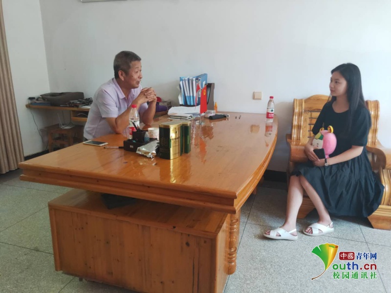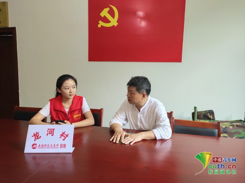 图为实践队对邱山村村支书吴双阳进行采访,了解邱山村在乡村振兴与生态文化建设上的未来规划。中国青年网通讯员 朱亚男 摄