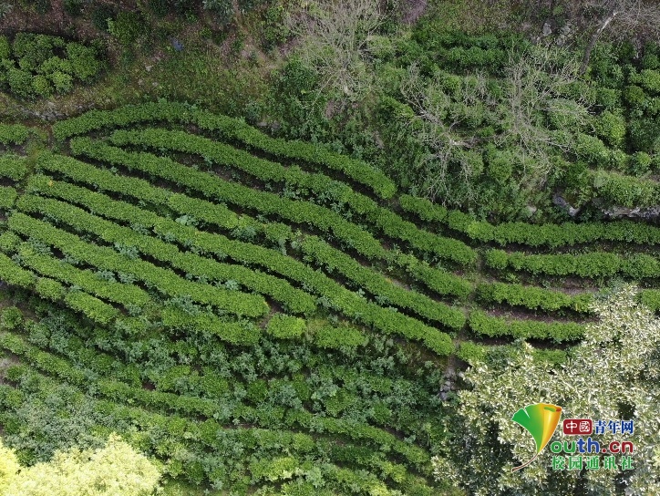 图为邱山村特色产品“宿松香芽”航拍摄 。中国青年网通讯员 唐博明 摄